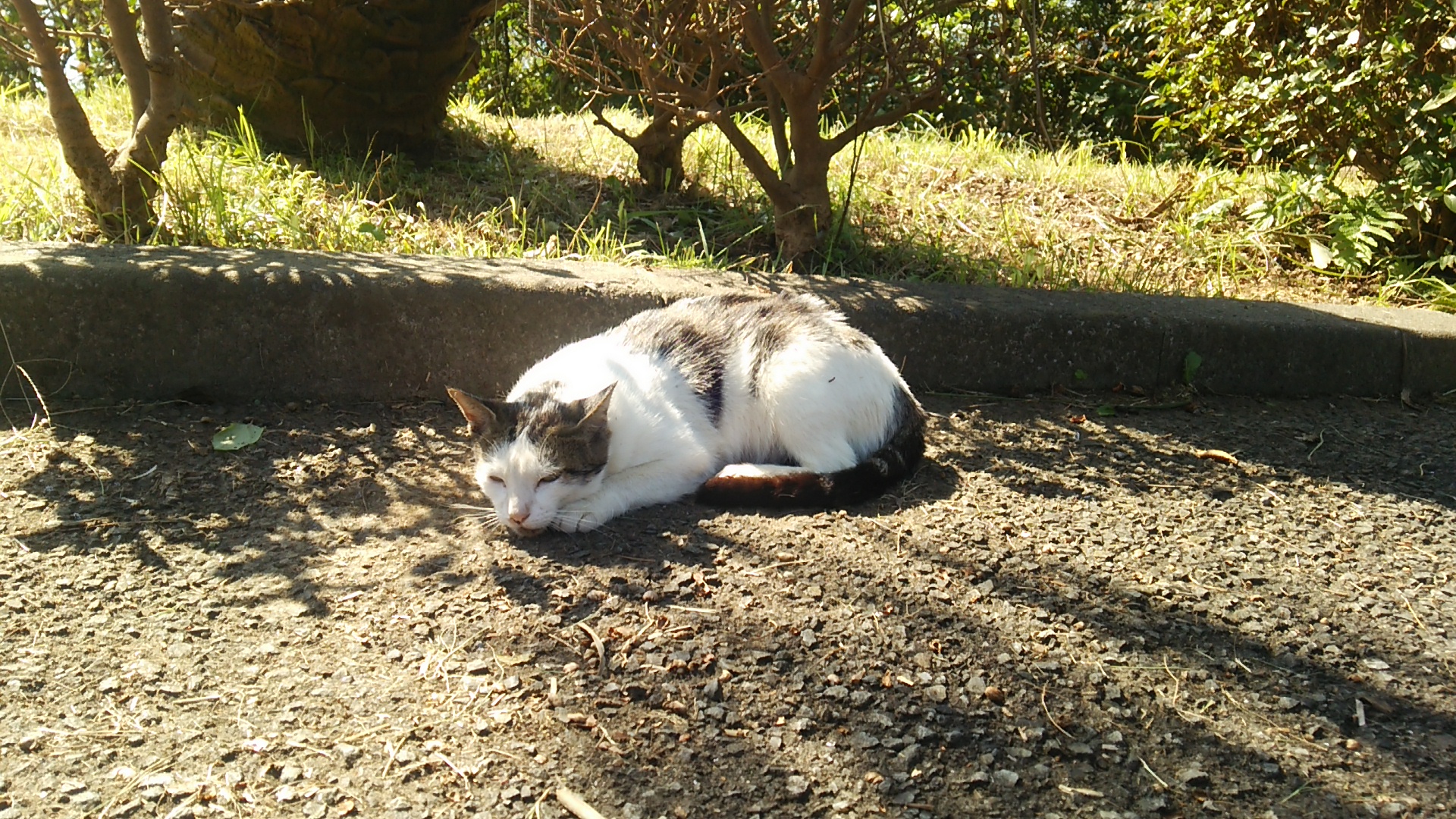 今回の散歩はそろそろ終わりにして、少しお休みするニャー。