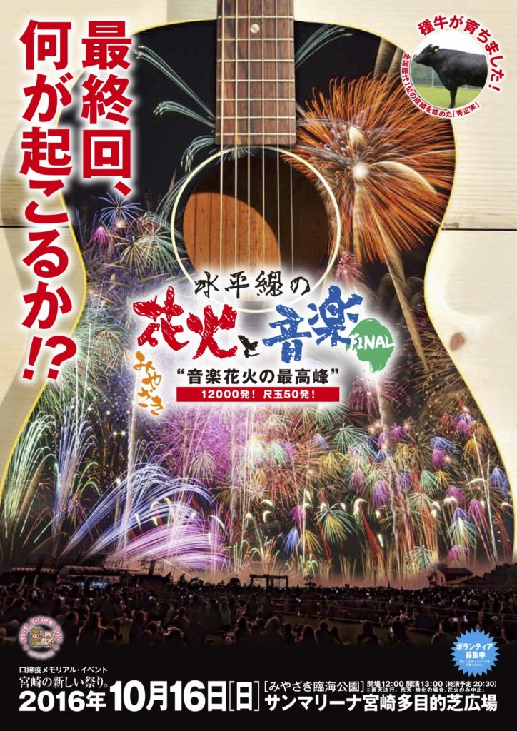 2010年に宮崎県内で発生した口蹄疫からの復興を願うイベントではじまった水平線の花火と音楽も、いよいよFINAL。何が起こるのか、楽しみにしていてくださいね♪